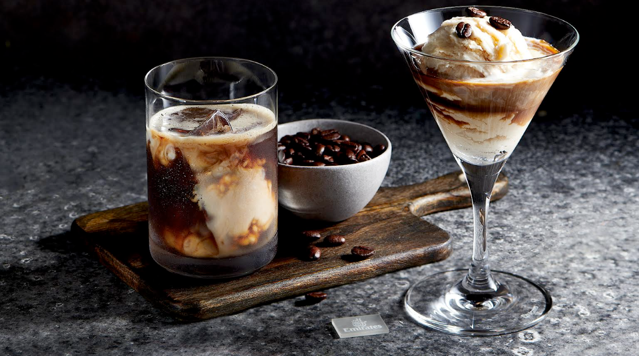 Emirates serves more than 17 tonnes of coffee onboard every year, and works with a range of suppliers including Lavazza, Coffee Planet, the Nairobi Coffee and Tea Company, and a host of independent suppliers globally. As part of the meal service, Economy and Premium Economy customers are offered coffee once or twice during their flight, while Business and First-Class customers can order from a coffee menu on demand, including a wide range of options like decaffeinated coffee, cappuccino, iced Americano, espresso, macchiato, and Arabic coffee with cardamom and saffron. These coffees are made with Lavazza beans that contain notes of walnut and maple syrup or cocoa and black pepper. Coffee connoisseurs can even enjoy an affogato al café dessert, where espresso is poured over creamy ice-cream.